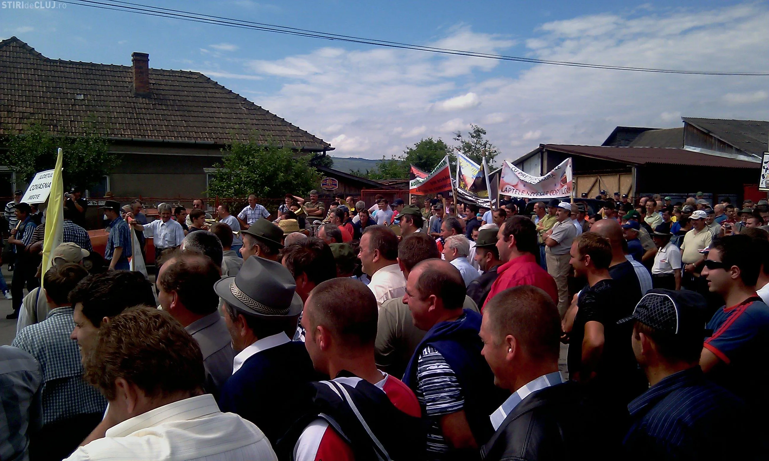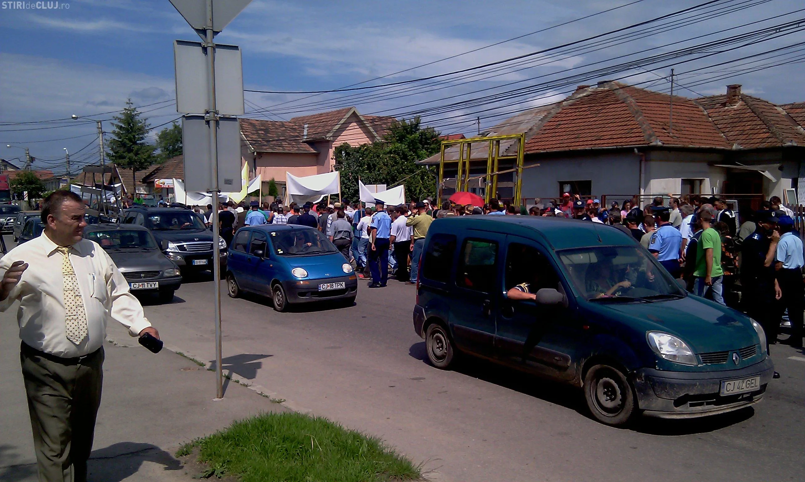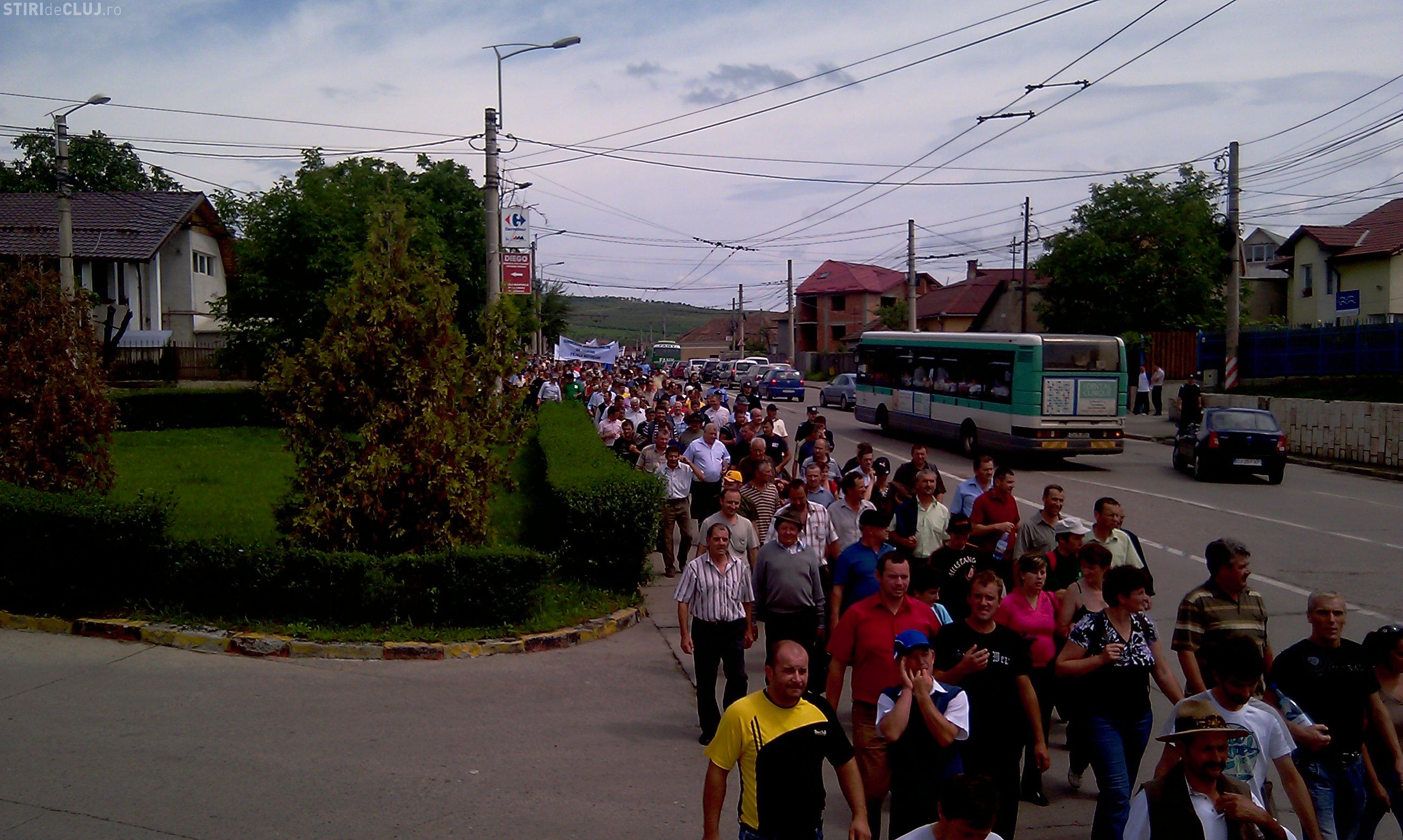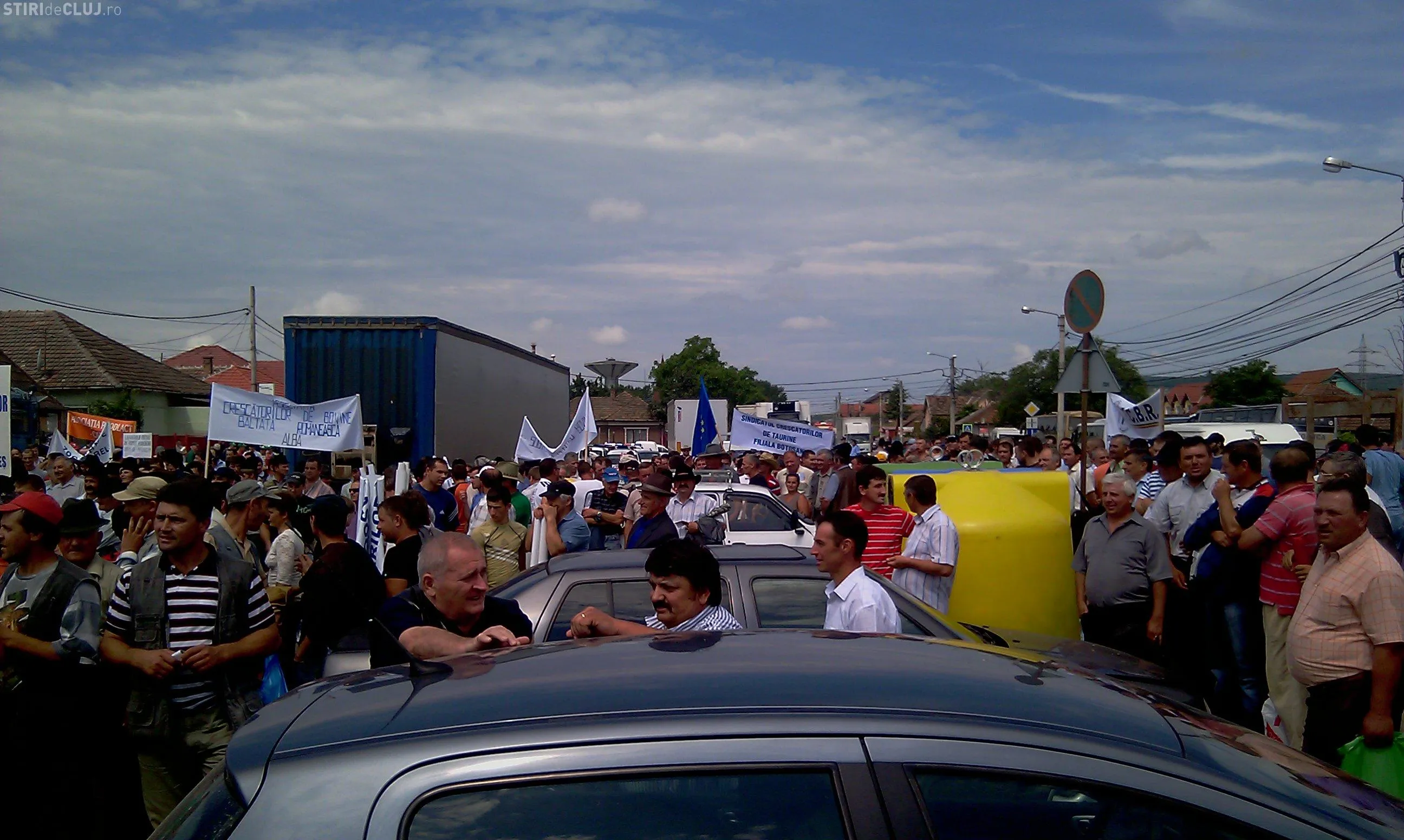 Aproximativ 1.500 de fermieri din Transilvania si Moldova protesteaza la Cluj-Napoca fata de neacordarea subventiei pe cap de vaca primita de Romania din partea Uniunii Europe.
