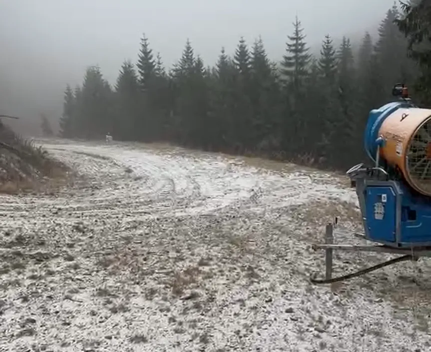 Prima ninsoare la Buscat: Imagini de „aproape” iarnă pe pârtie