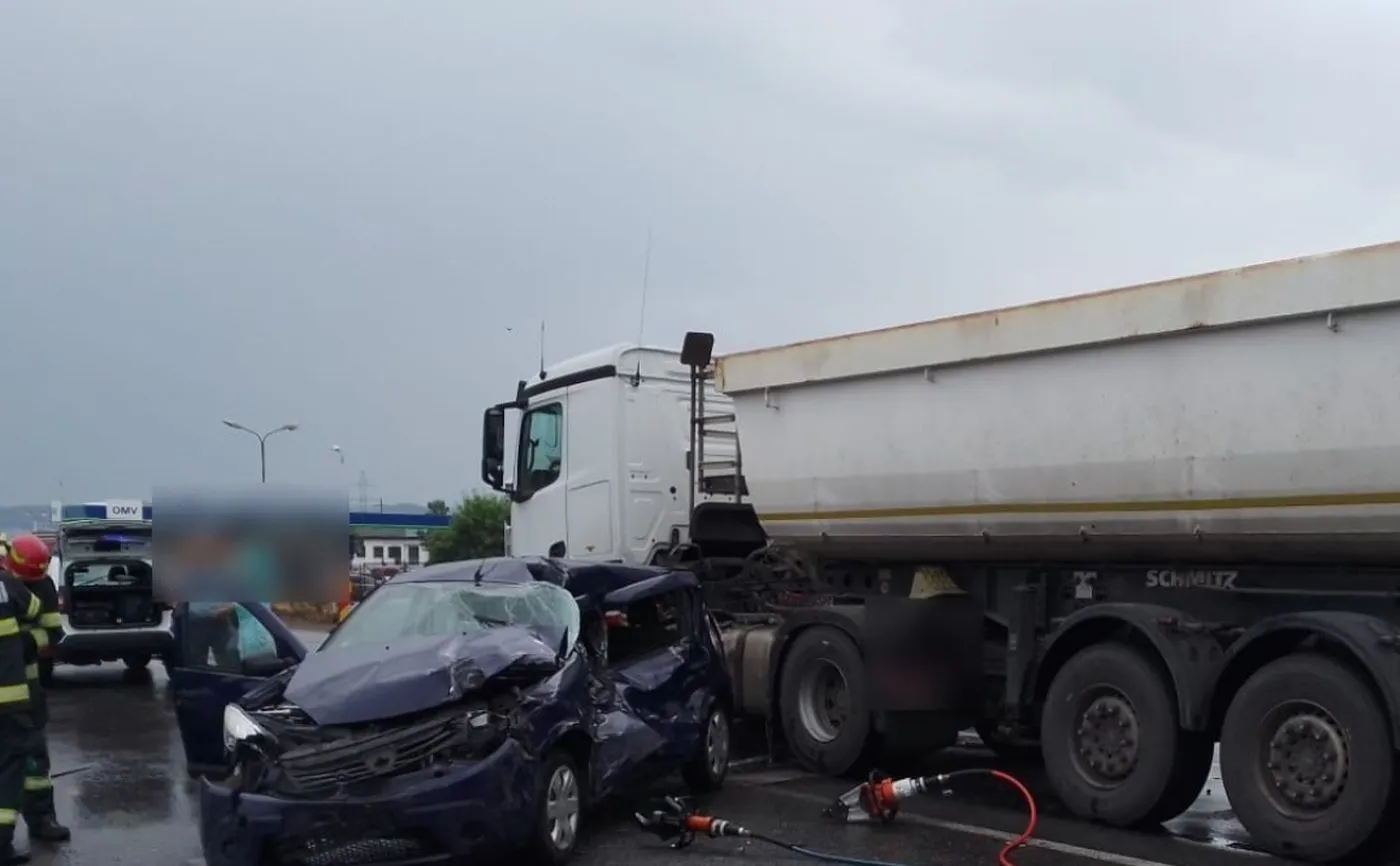 Accident cumplit pe DN1 E60 din județul Cluj, pe raza localității Gilău. Pompierii au fost chemați de urgență pentru a ajuta un bărbat încarcerat.