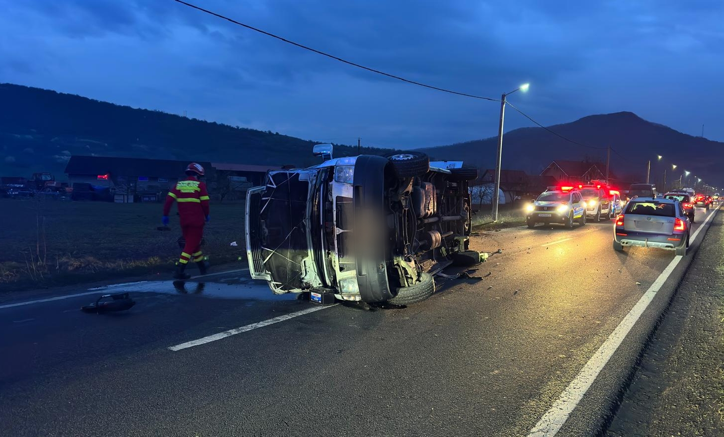 Deși în autoutilitară se aflau doi adulți și cinci minori, nicio persoană nu a necesitat transport la spital, potrivit primelor informații transmise de IPJ Cluj.