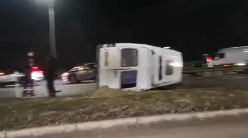 Un ansamblu de vehicule, o autoutilitară cu remorcă încărcată cu materiale feroase, conducea dinspre municipiul Dej când a intrat în balans. Șoferul, un bărbat de 33 de ani din județul Sălaj, a pierdut controlul direcției, iar vehiculul s-a răsturnat pe carosabil.