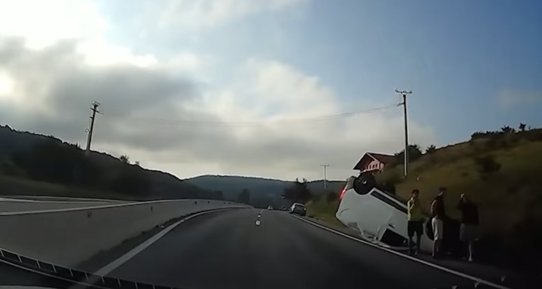 VIDEO. Accident grav pe un drum din Cluj în curba „morții”: Mașină răsturnată, pompierii și ambulanța au intervenit rapid traficul este îngreunat