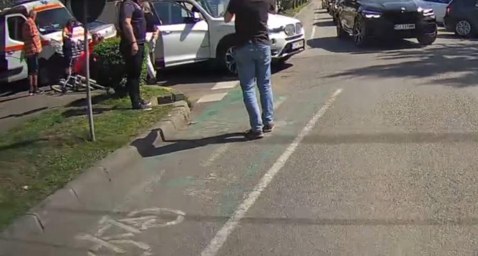 VIDEO Accident în Cluj-Napoca, în apropiere de Piața 14 Iulie. Un biciclist a fost rănit de impactul cu un SUV BMW