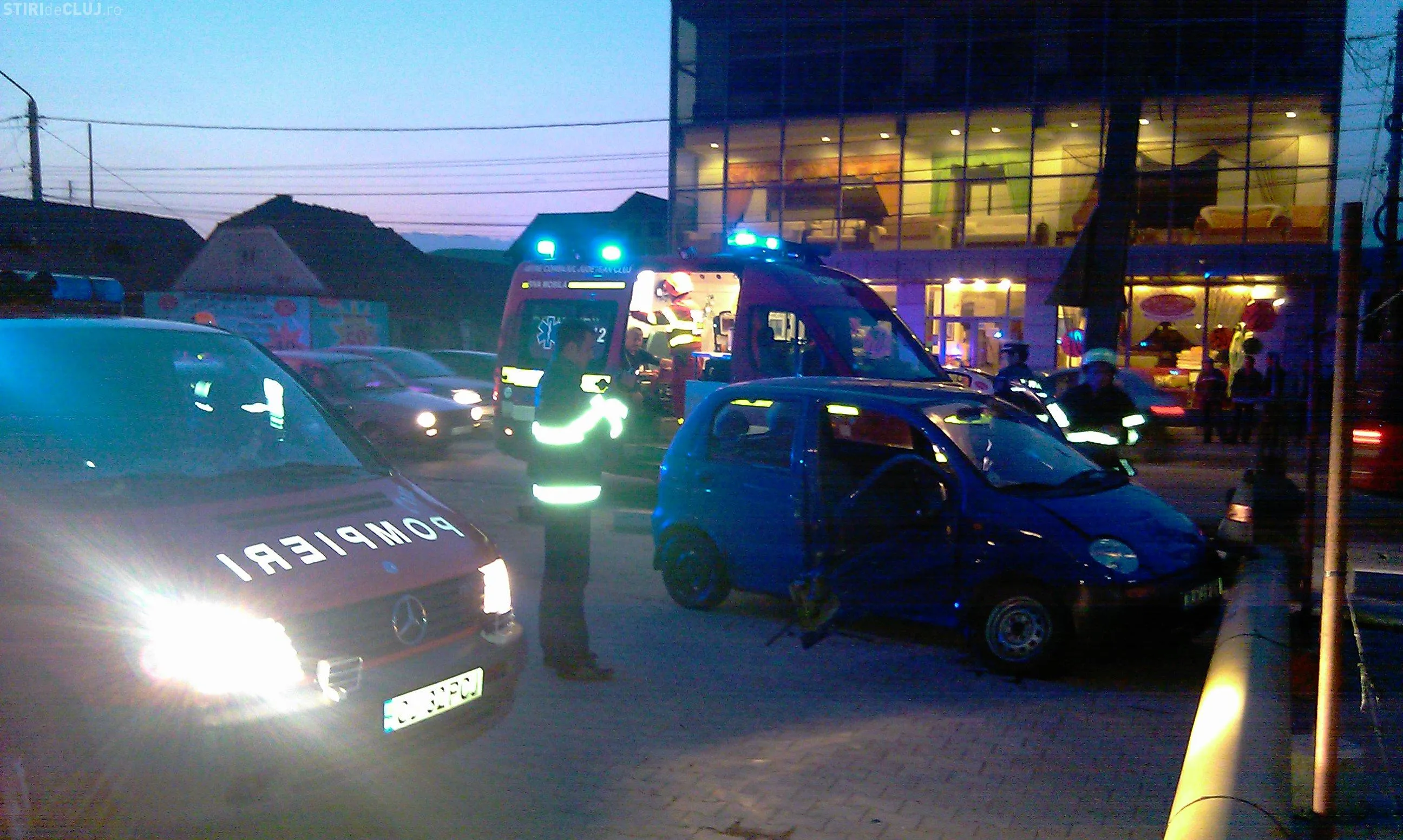 Martorii sustin ca soferul de pe Matiz a fost lasat sa treaca de masinile de pe banda a doua de circulatie, dar soferul Audi - ului, care circula pe prima banda si se indrepta spre Cluj-Napoca, nu a mai oprit. In urma impactului cele doua masini au ajuns in parcarea unui magazin si s-au oprit la cativa centimetri de o conducta de gaz.
