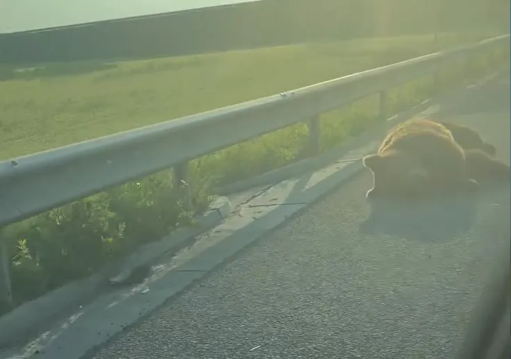 VIDEO Accident neobișnuit pe Autostrada A3, între Cluj și Târgu-Mureș: Un urs a fost lovit mortal. Problema gravă: Lipsă garduri de protecție pe autostrăzi