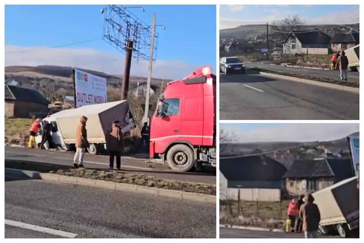 VIDEO. Accident Vâlcele, Cluj: Șoferul nevinovat a ajuns la spital cu multiple traumatisme, pentru că un șofer de TIR nu a păstrat distanța