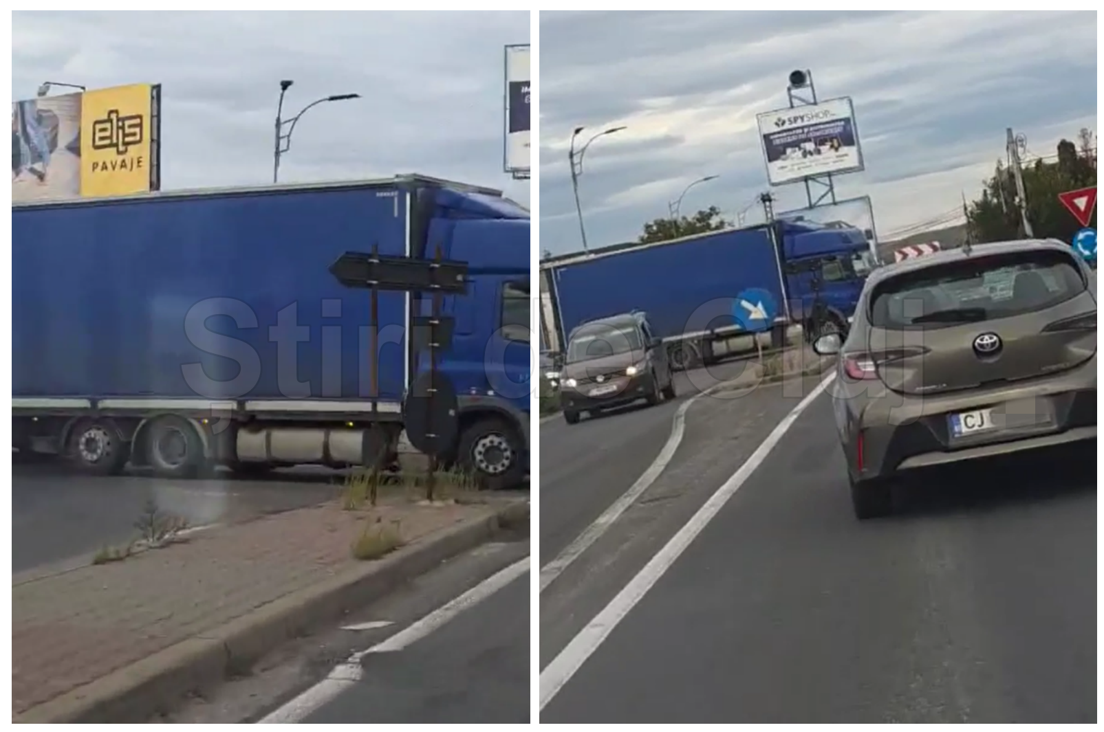 VIDEO: Ambuteiaj uriaș în Apahida: TIR blocat în sensul giratoriu din cauza barierelor CFR. Cozi imense la trecerea cu calea ferată