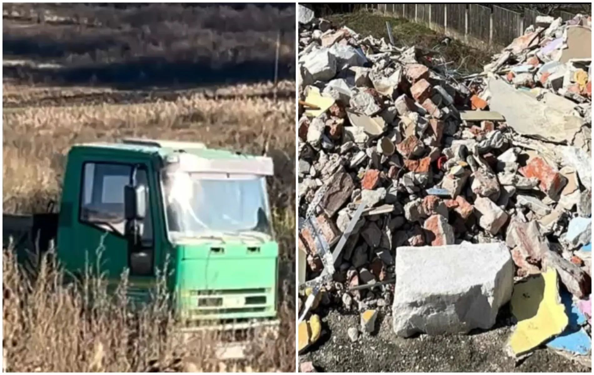 Camion surprins în flagrant în timp ce scăpa de moloz și alte deșeuri rezultate din construcții