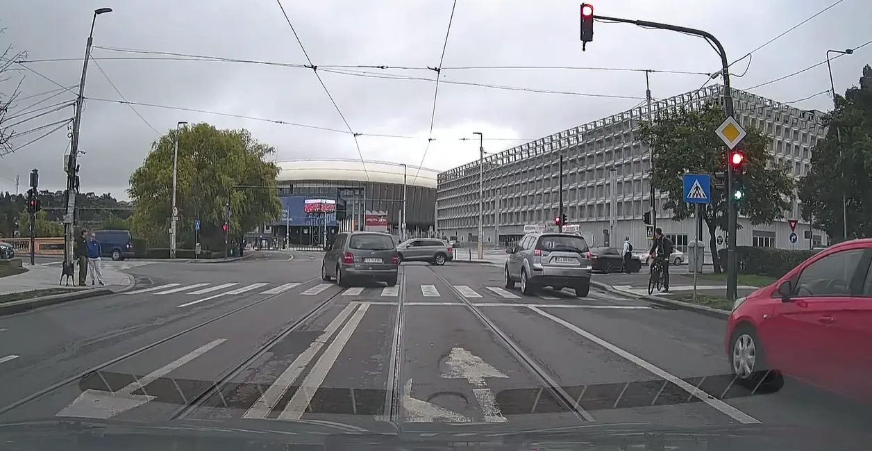 VIDEO. Aventura riscantă a unui șofer inconștient din Cluj-Napoca, lângă BT Arena! Semaforul era roșu, intersecția plină, dar mintea goală