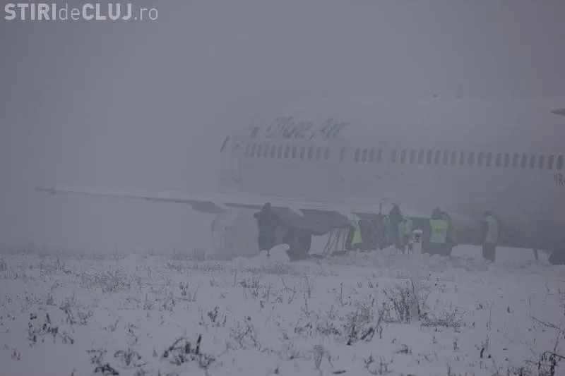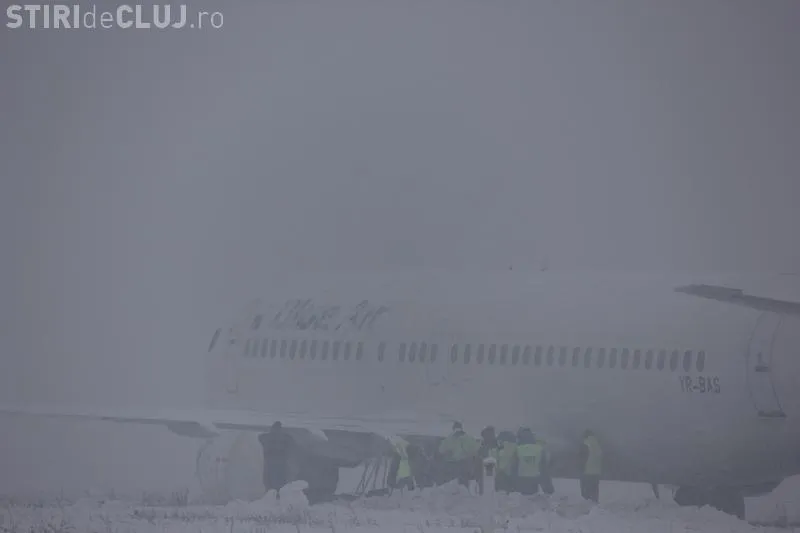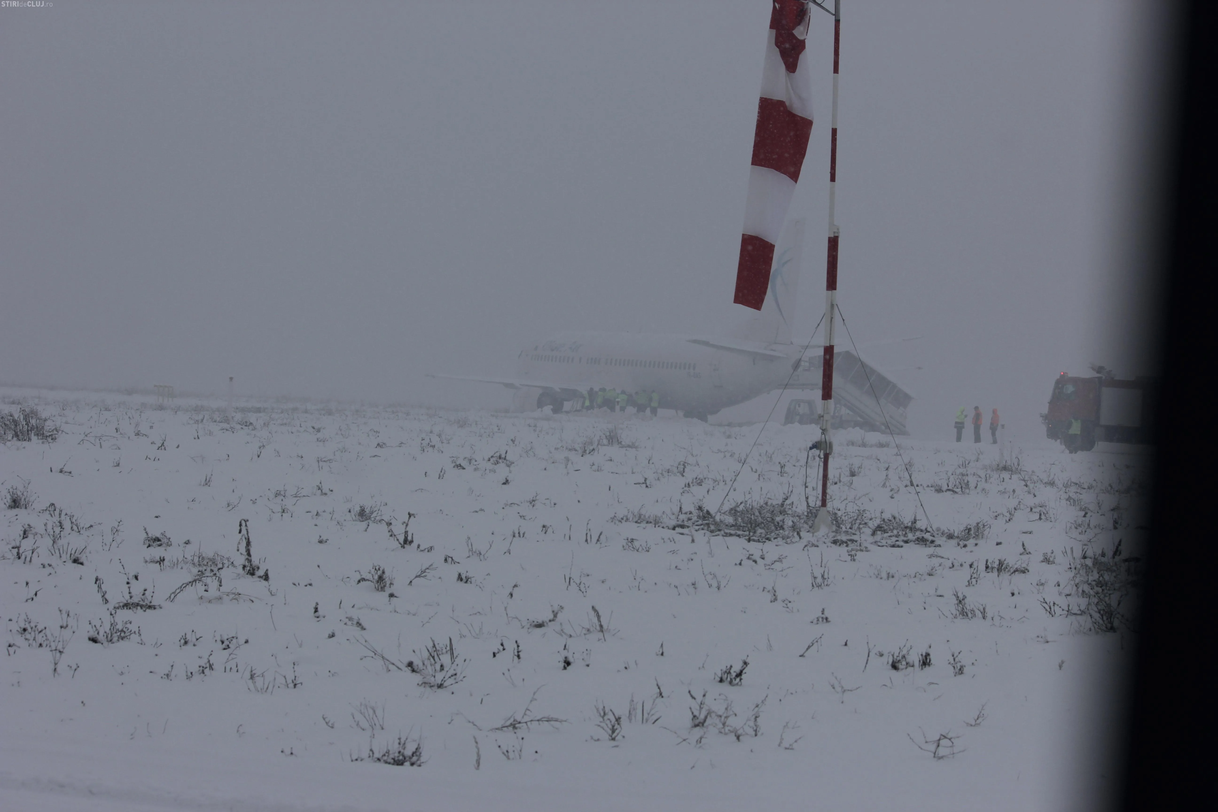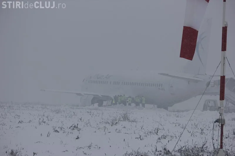 VIDEO - Avionul Blue Air a ajuns pe câmp la Cluj. Trebuie tractat pe pistă - FOTO