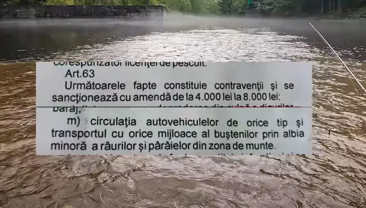 Acesta a surprins cum prin coada lacului se extrag lemne prin râu, iar acest lucru constituie contravenție (legea pe piscicol). Amenda este cuprinsă între 4000 - 8000 lei, dar nimeni nu vede nimic. Chiar și acest material va fi ignorat, fără presiune publică. Banditul CERE TUTUROR SĂ DISTRIBUIE această informație. Numai presiunea publică va mișca lucrurile.