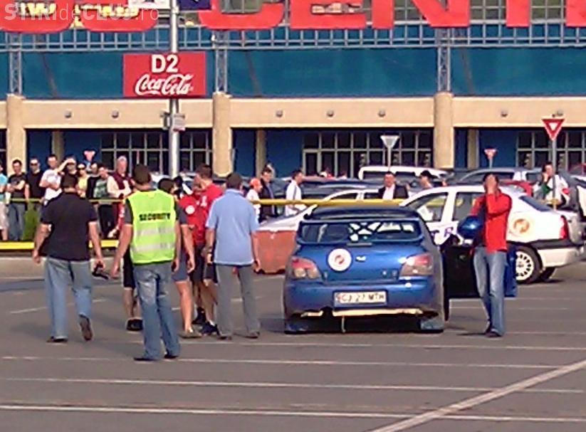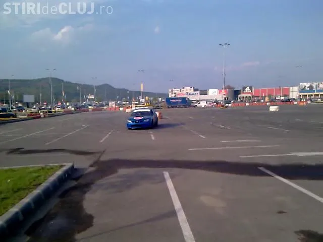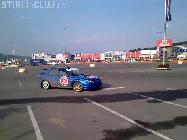 Driverii de la Napoca Rally Academy au folosit o masina de curse si alaturi de copilotii "amatori" au facut drift -uri pe platoul din fata Polus Center.