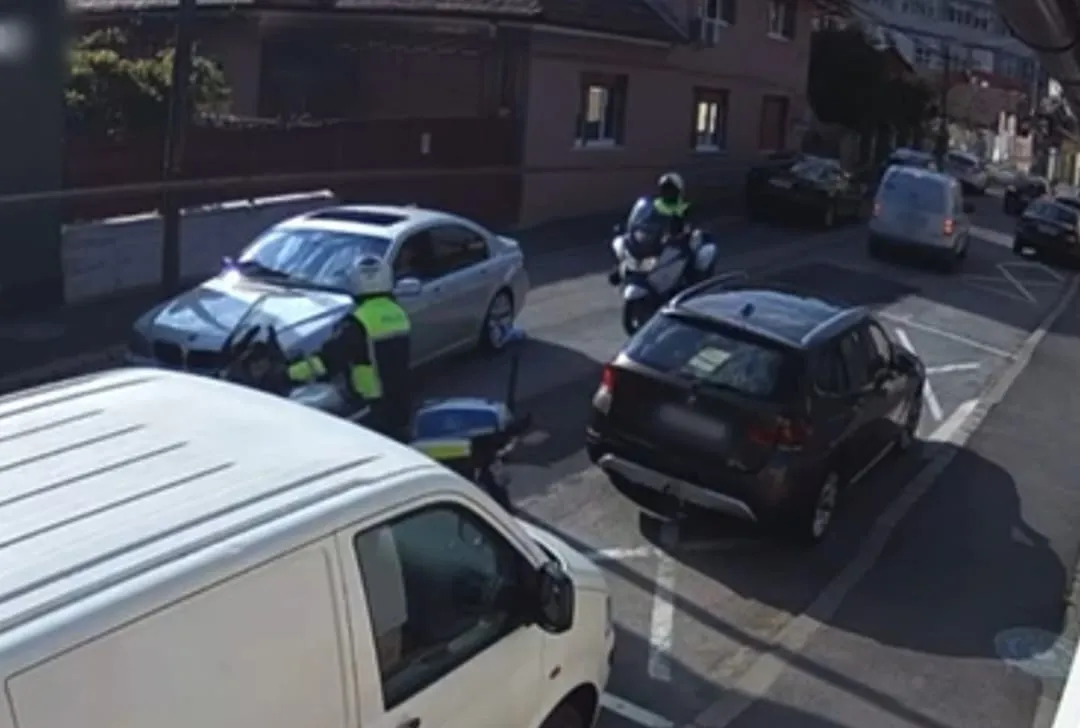 VIDEO - Cluj: Cum a fost prins șoferul unui BMW, care a fugit de poliție! L-au scos pe sus din mașină