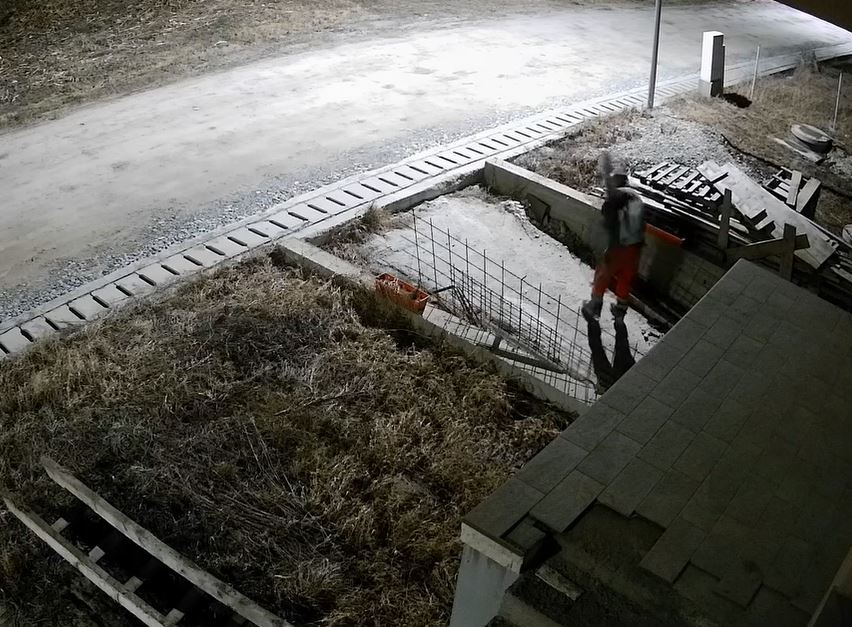 Imaginile filmate la o oră apropiată de miezul nopții arată cum bărbatul mai în vârstă trece pe stradă și în momentul când se află lângă o casă în construcție este atras de materialele depozitate lângă ea.