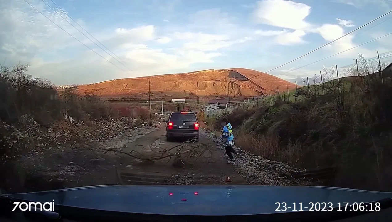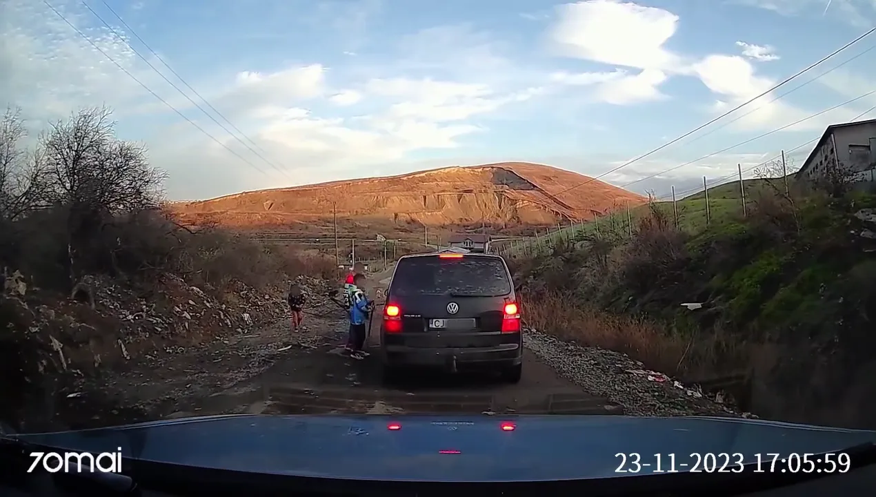 Mai mulți copii au fost filmat la Pata Rât, pe drumul care duce spre centura Vâlcele - Apahida, în timp ce blocau drumul mașinilor cu o creangă și cereau bani pentru a-i lăsa să treacă.