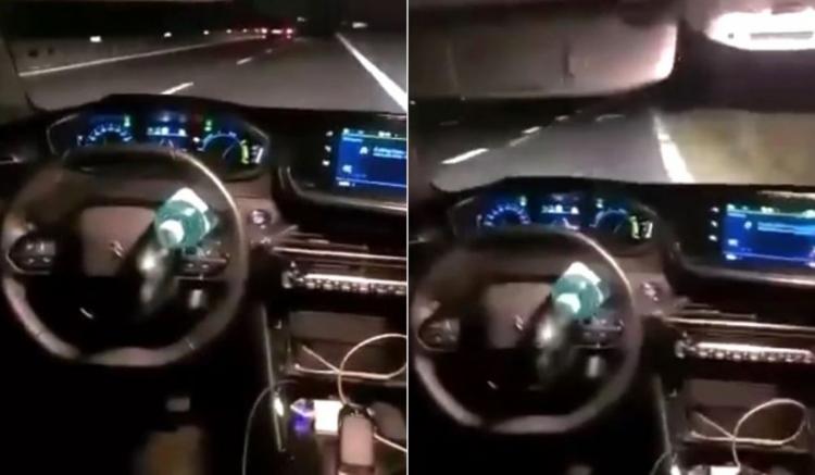 După aproape un minut, maşina a început să vireze la dreapta, iar „şoferul” şi cealaltă persoană din maşină nu au putut să recapete controlul.