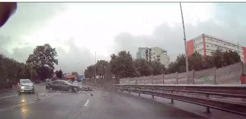 Din imagini se observă cum șoferul care a provocat accidentul a pierdut controlul volanului și a pătruns brusc pe contrasens, unde s-a izbit violent de un alt autoturism care face Bolt.