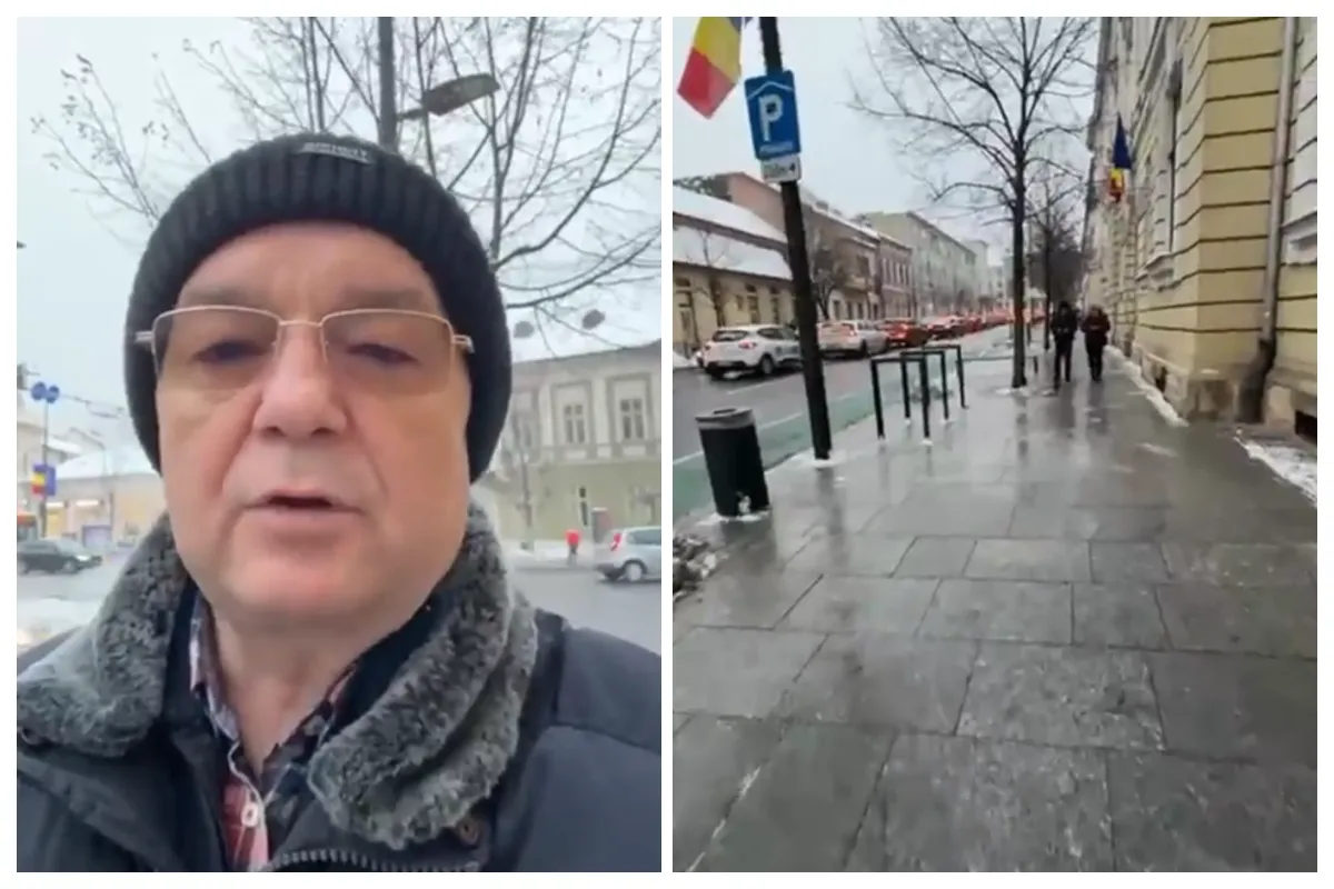 VIDEO. Dalele de granit, mărul discordiei la Cluj, sunt principalele „capcane” din cauza poleiului. Boc avertizează: „Aveți grijă să nu alunecați!