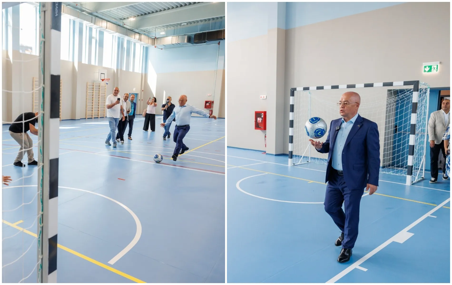 Primarul Emil Boc a jucat handbal și fotbal, după ce a inaugurat o școală nouă în Iris