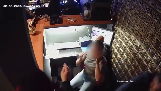 Din imagini se vede cum bărbatul intră în local și începe să își bată fosta soție, căreia îi aplică lovituri cu pumnul peste față.