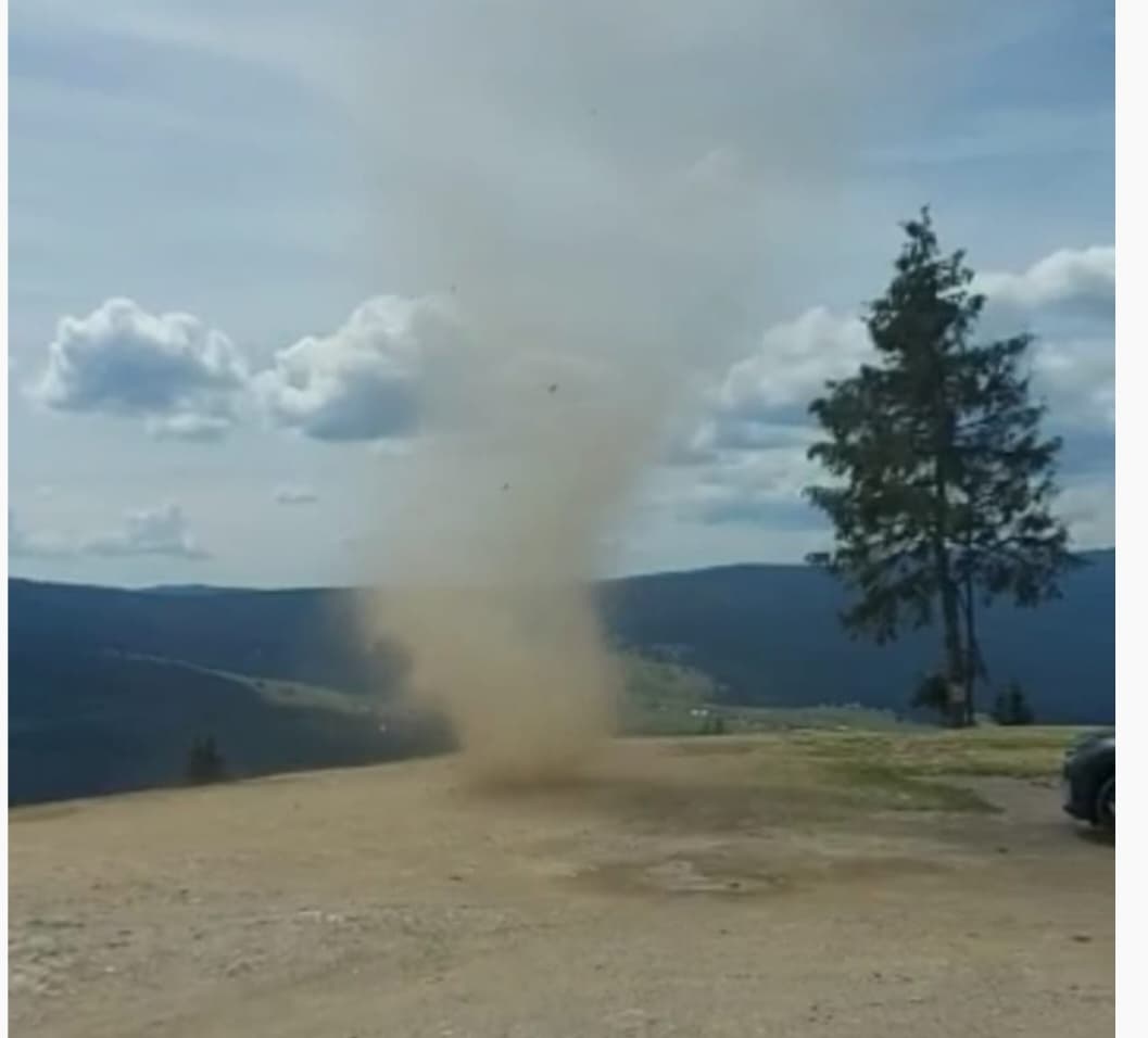 VIDEO. Fenomen inedit în Apuseni! Vârtej neobișnuit, ca o mică tornadă, observat într-o localitate din Cluj