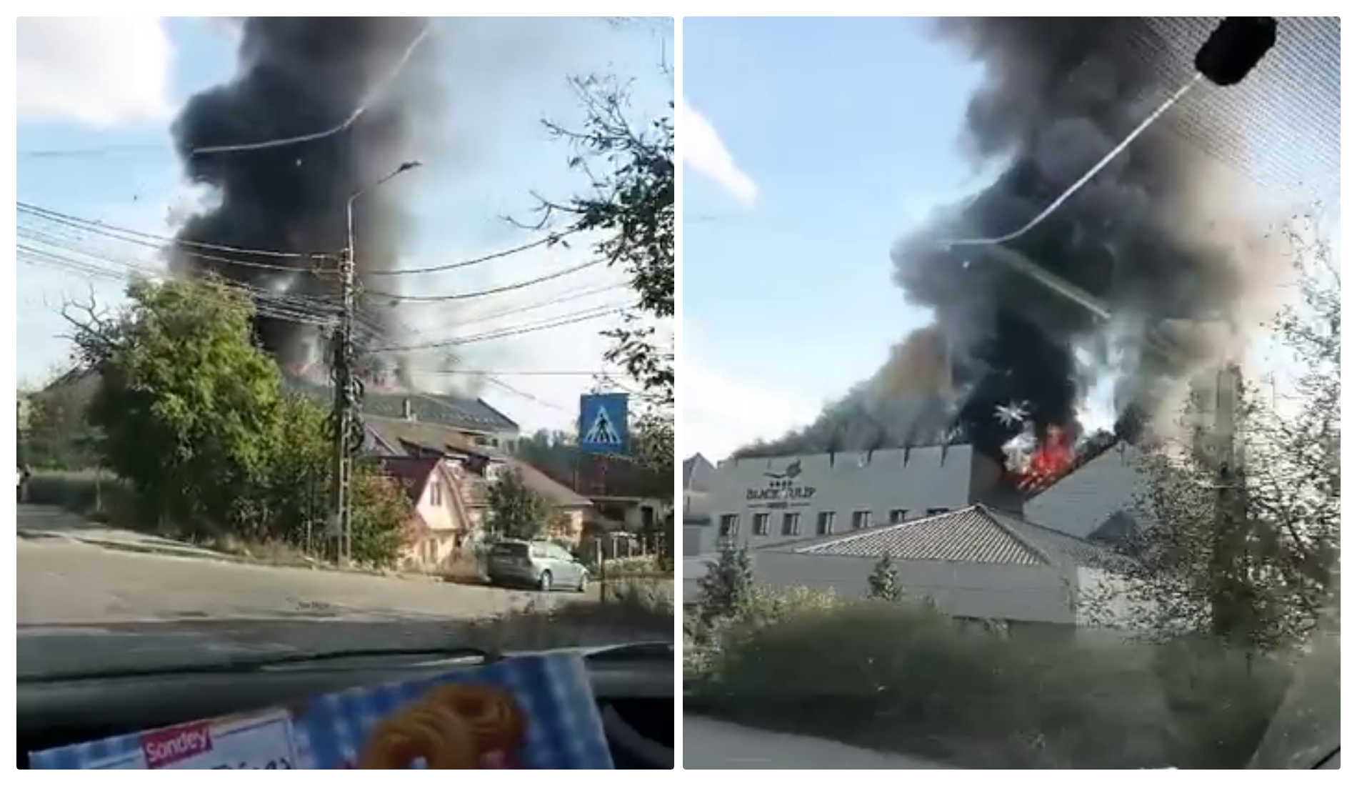 VIDEO - “Ferească Dumnezeu!” - Hotelul Black Tulip Dej a ars ca o torță. Imagini filmate de un martor ocular