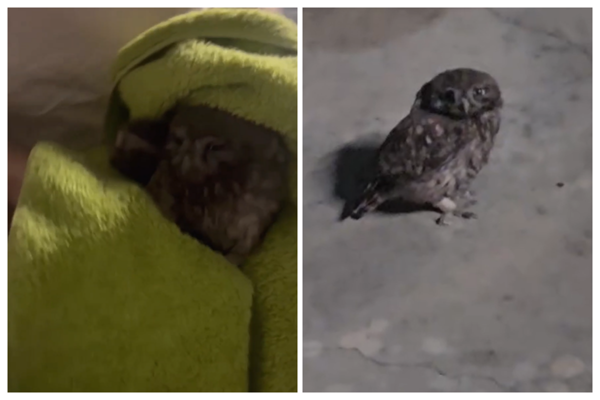 VIDEO Final trist! Un pui de bufniță, care a stat ore în șir fără apă în parcarea Cluj Arena, a murit în brațele clujenilor ce au încercat să-l salveze