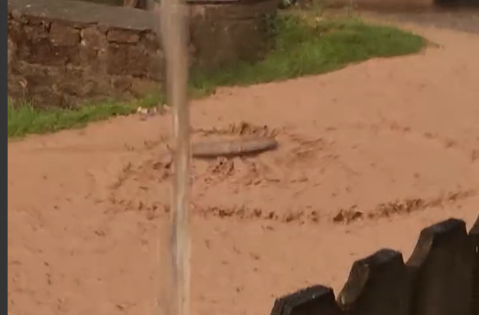 Imaginile surprinse arată apa care se revarsă pur și simplu din capacul unui canal, inundând străzil. Drumul pare aproape acoperit complet de o apă noroioasă, iar circulația aproape imposibilă.
