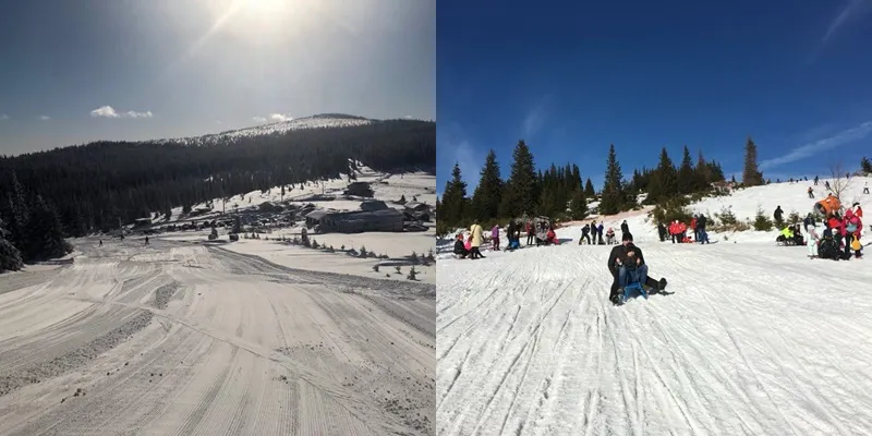 VIDEO/FOTO - Pârtiile din Cluj, luate cu asalt, după ce a nins toată noaptea. Clujenii, prezenți de dimineață pe pârtia Buscat