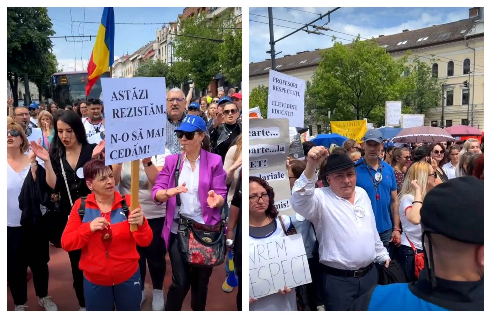 „Astăzi rezistăm. N-o să mai cedăm!”; „Nu sunt bani pentru educație? Puteți să tăiați pensiile speciale”; „Din respect pentru profesori și pentru copii”, sunt doar câteva dintre mesajele sindicaliștilor din Educație.