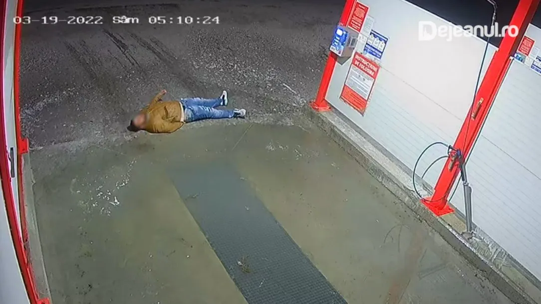 Sâmbătă dimineața, în jurul orei 05:00, tânărul a ajuns în spalatoria auto de pe strada Bistritei, din Dej, pentru a fura bani. Vizibil beat, acesta a studiat prima dată terenul și a văzut caseta metalică în care clienții spălătoriei pun banii. În timp ce mergea curajos, acesta a tras o trântă de toată frumusețea, pe o bucată de gheață, dejeanul.ro.