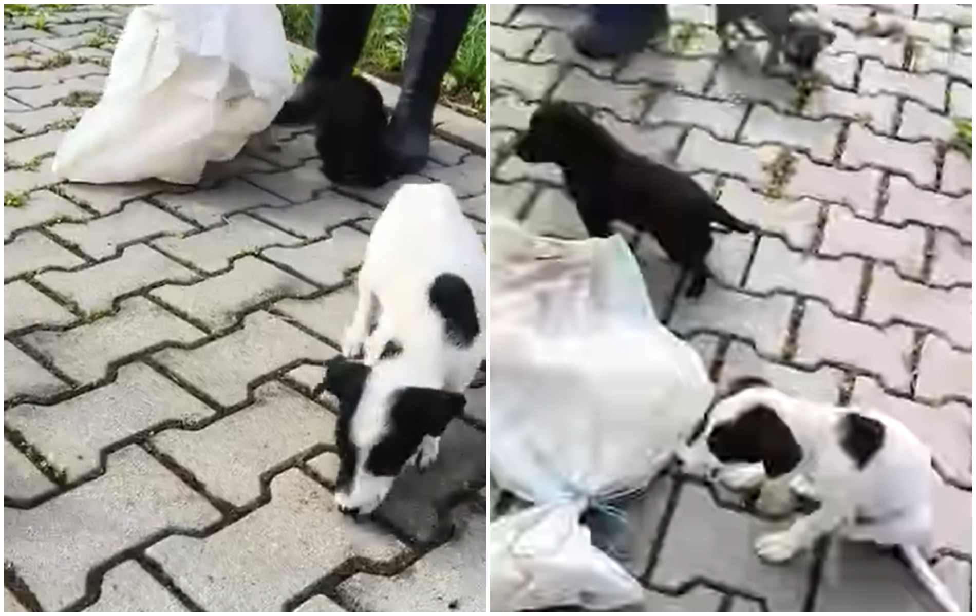 VIDEO. Imagini revoltătoare. Cinci pui de câine au fost aruncați într-un sac peste gardul unui adăpost de animale din Cluj: „O rușine!”