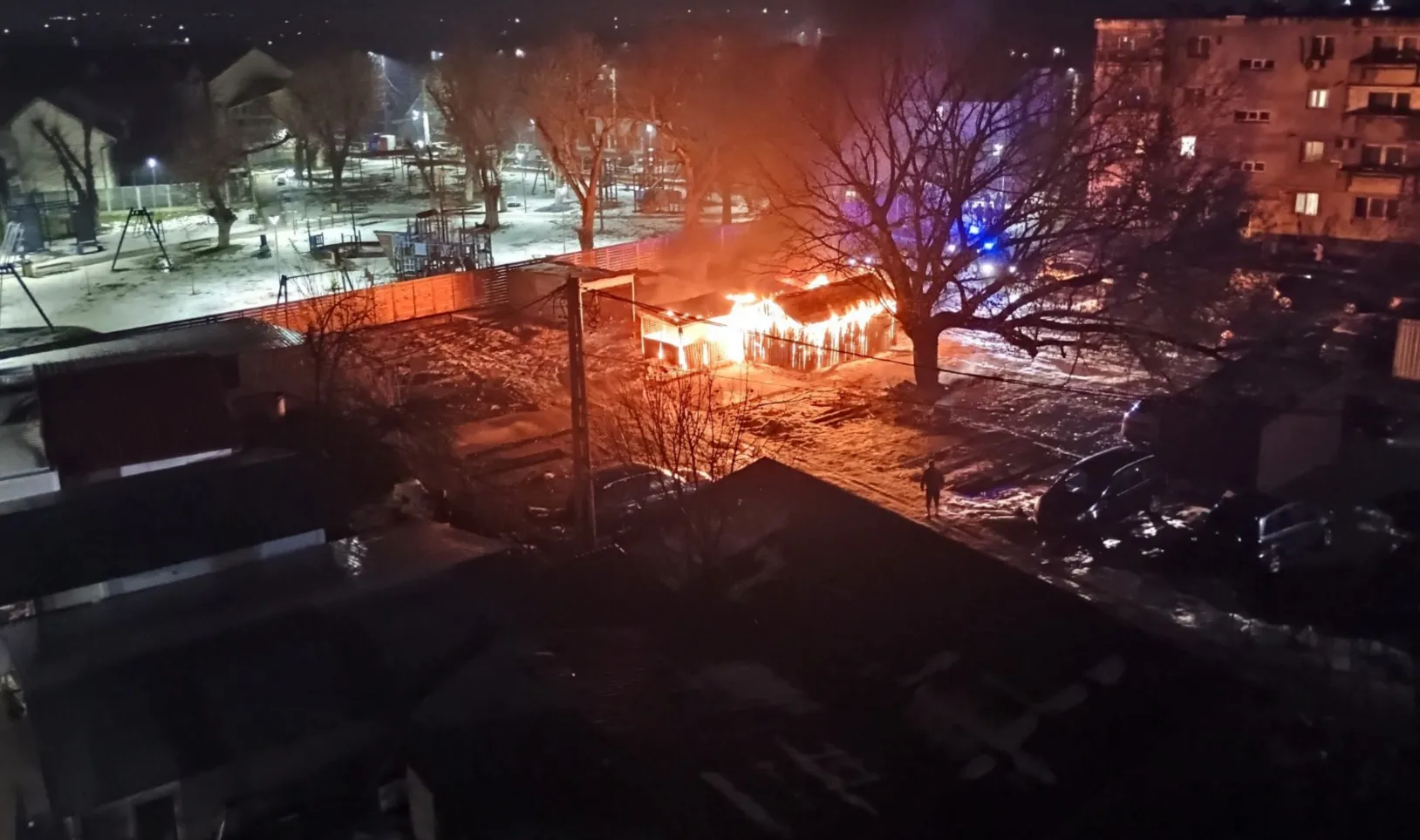 Potrivit primelor informații furnizate de pompieri, incendiul a început în jurul orei 22.00, cel mai probabil în urma aprinderii unei ghene de gunoi, din cauza materialelor depozitate. Focul s‑a propagat apoi la două garaje.