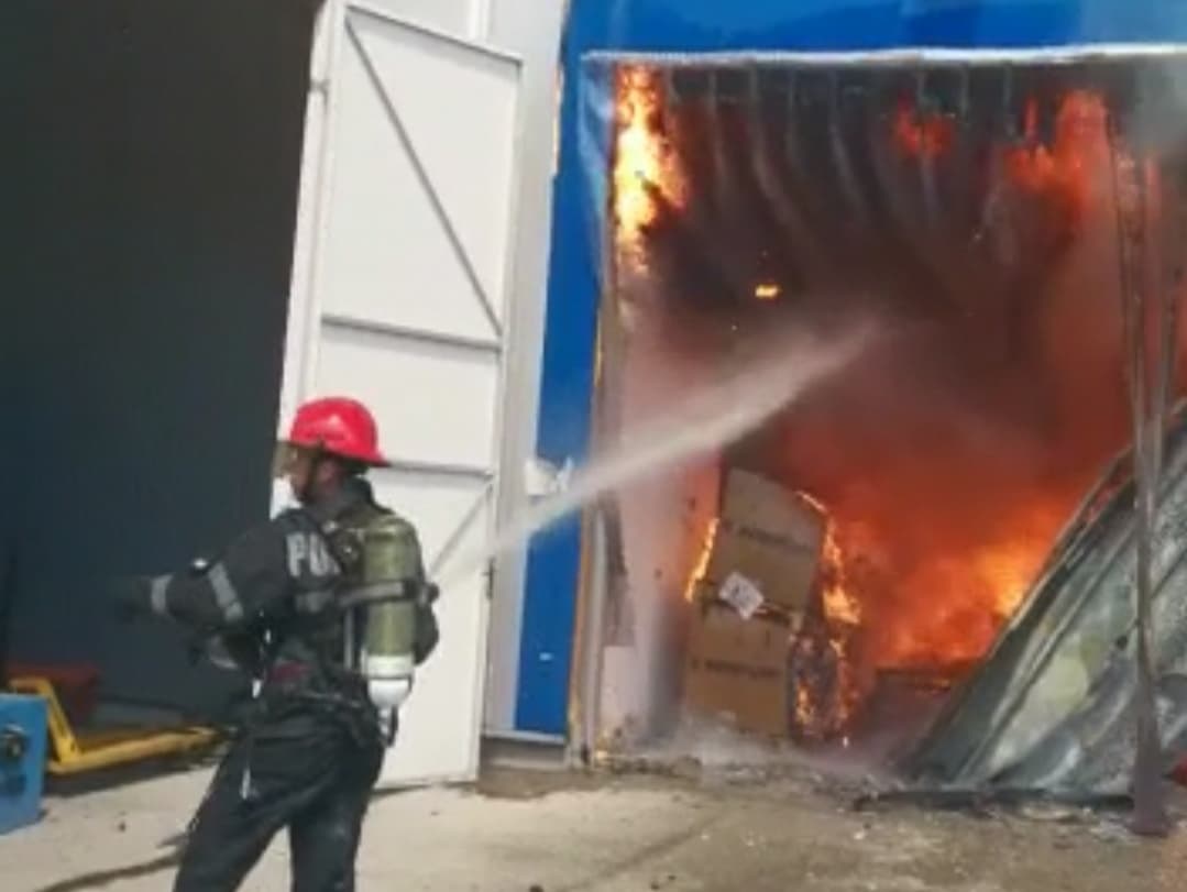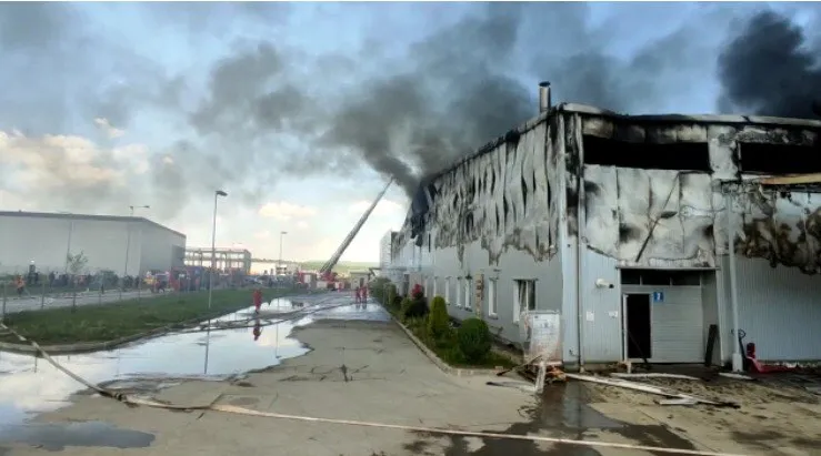 Incendiul se manifestă în continuare cu violență, o parte din structura halei s-a prăbușit și există pericol de prăbușire totală. Pompierii intervin pentru limitarea propagării flăcărilor și pentru împiedicarea extinderii acestora la o hală situată în apropierea acesteia.