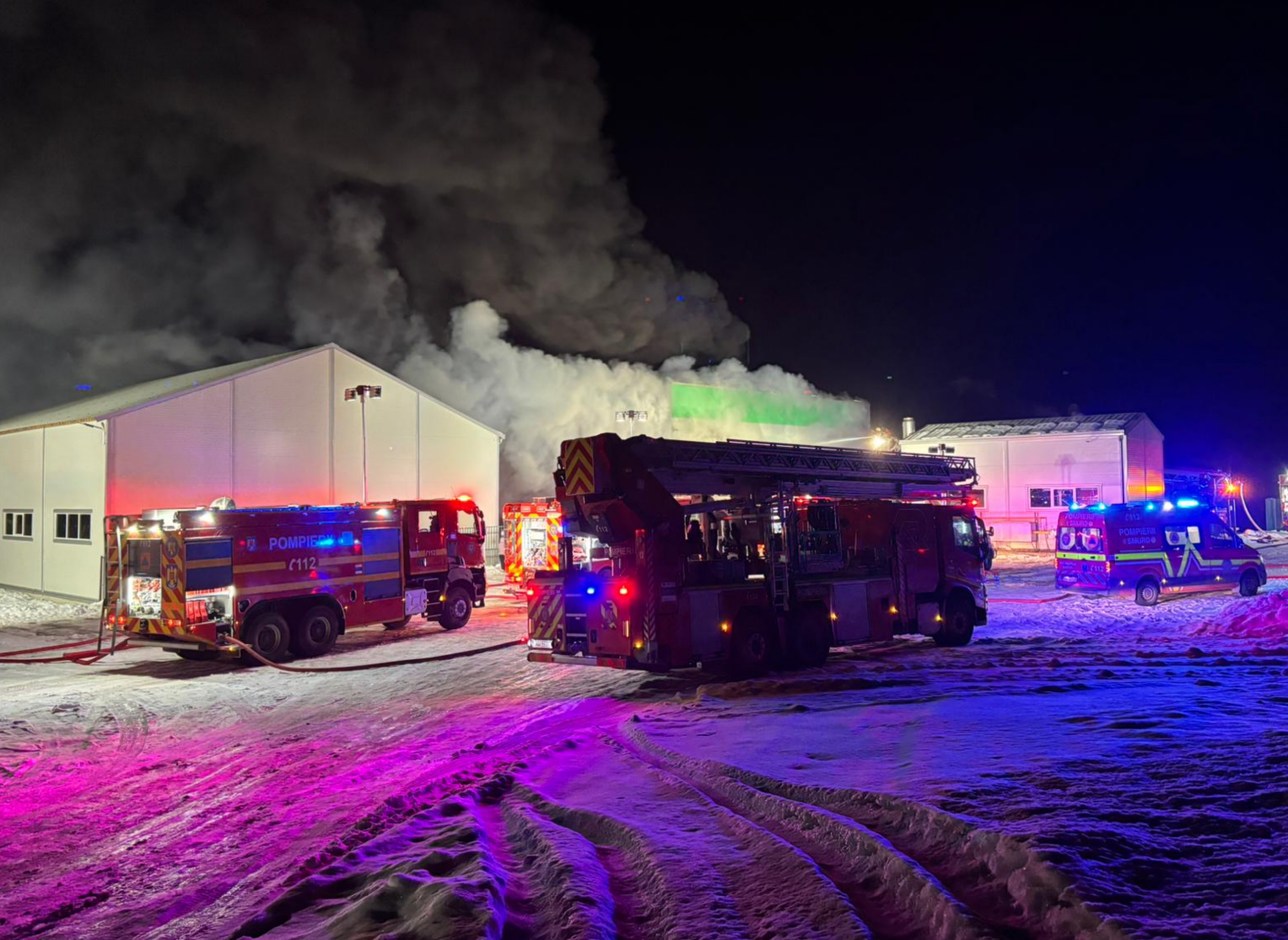 VIDEO. Incendiul uriaș de azi-noapte de la fabrica de polistiren din Iclod, Cluj, stins abia acum, după o luptă cu flăcările care a durat toată noaptea