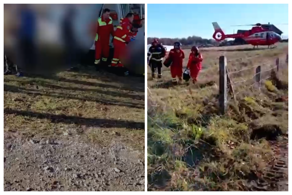 Intervenție urgentă pentru salvarea unui bărbat prins într-un utilaj agricol în Dealu Negru, Cluj. A fost chemat elicopterul SMURD