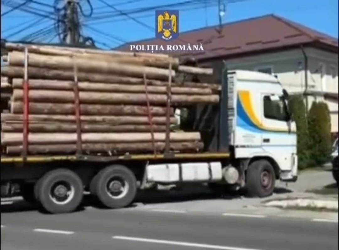 VIDEO. Lemn ilegal de 300.000 de lei, confiscat de polițiștii clujeni. Șoferul a rămas fără camion/Firma, amendată cu 10.000 de lei