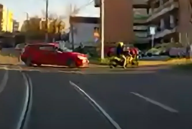 Accident în Cluj-Napoca, în cartierul Mănăștur: Un Opel a lovit inexplicabil un scuterist, momentul fiind surprins de o cameră de bord