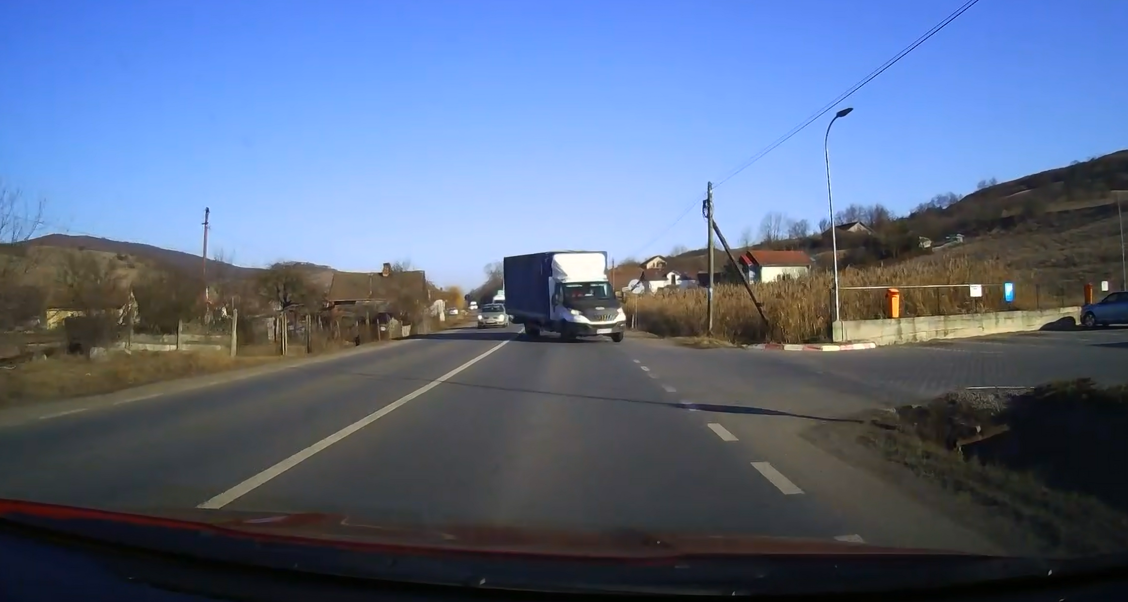 Un șofer a fost la un pas de tragedie după ce un camion a virat brusc stânga, fără să se asigure, tăindu-i calea în ultimul moment. Incidentul a fost surprins de camera de bord a mașinii, iar imaginile sunt de-a dreptul șocante.