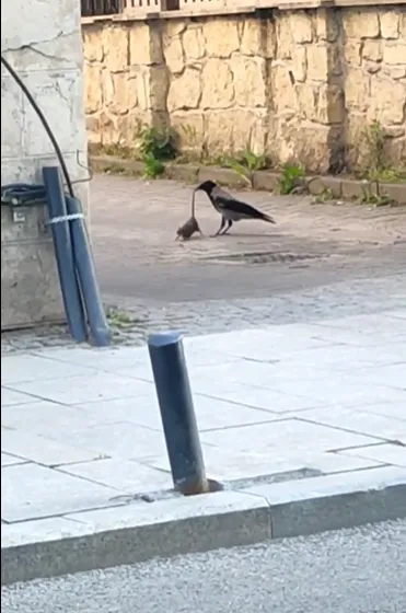 VIDEO - „Luptă” pe cinste între o cioară și un șobolan în centrul municipiului Cluj-Napoca: „Clujul cu multe stele!”