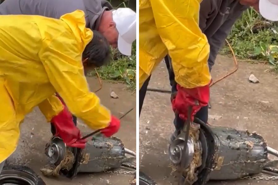 VIDEO. Materiale textile, scoase de angajații Companiei de Apă din canalizarea din Florești: „Nu au ce căuta”