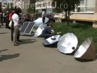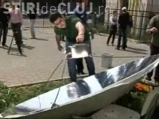 Studentii de la Universitatea Tehnica din Cluj-Napoca au organizat un picnic ecologic cu mititei, gratare si cartofi prajiti, totul gatit pe o antena parabolica, care se incalzeste de la razele soarelui.