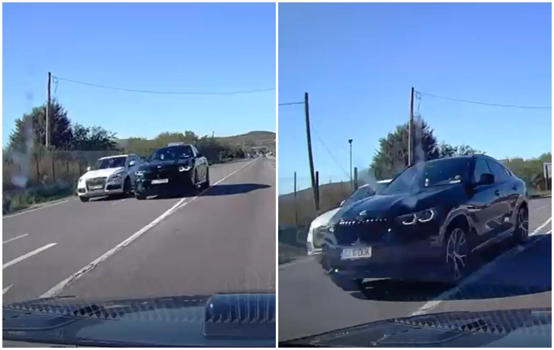Pe imaginile surprinse de camera de bord se poate observa cum bolidul BMW aproape că intră pe contrasens în încercarea de a depăși un autovehicul. În acel moment, din sens opus circula regulamentar un alt autoturism și doar norocul a făcut să nu existe un accident grav pe acest drum.