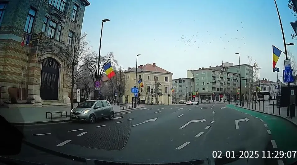 Suceveanul intră pe contrasens în ciuda indicatoarelor și a marcajelor foarte clare de pe asfalt, dar se oprește când a văzut, probabil, toate benzile de pe strada Clinicilor ocupate de mașini orientate cu fața în sensul opus.