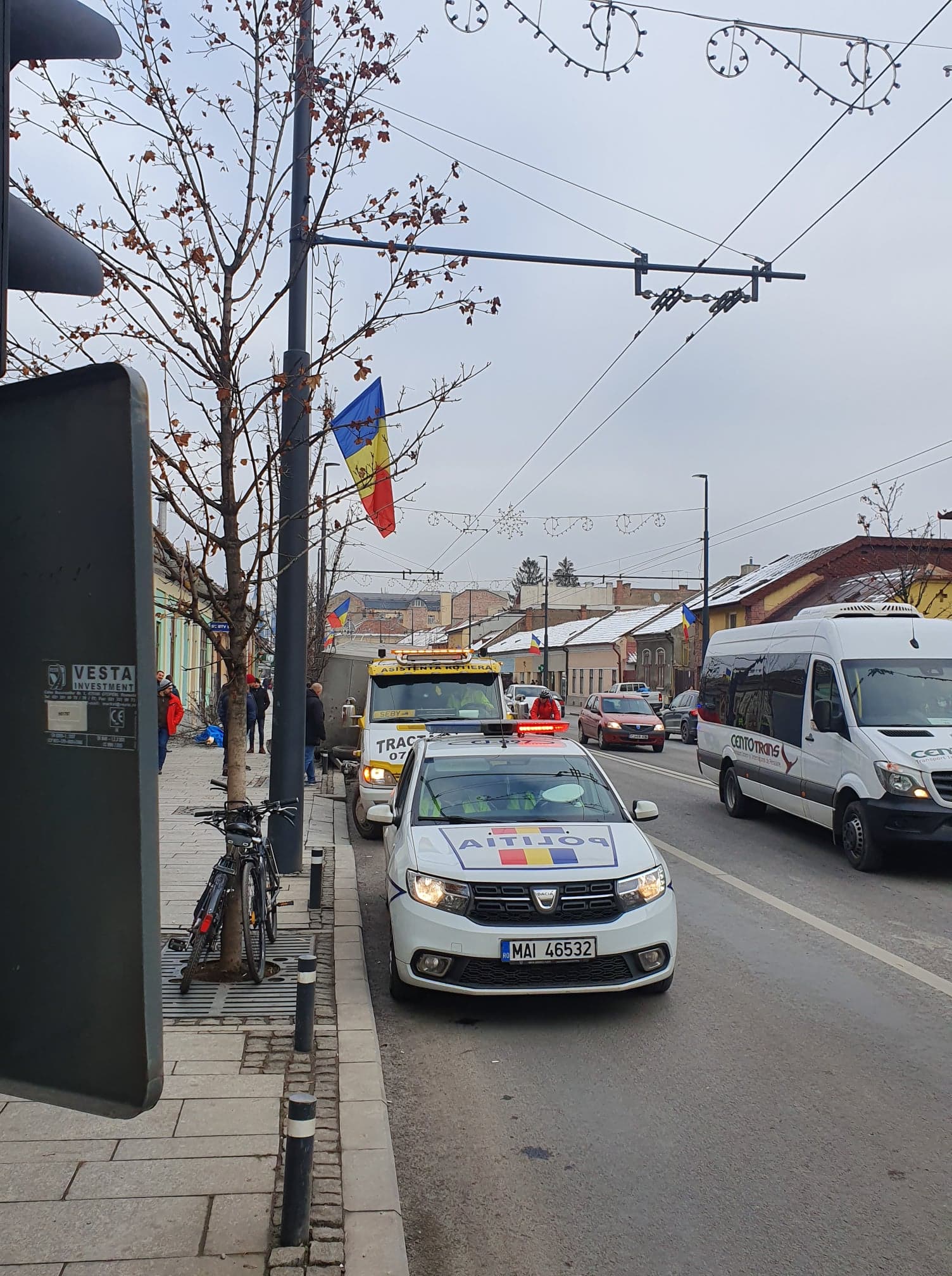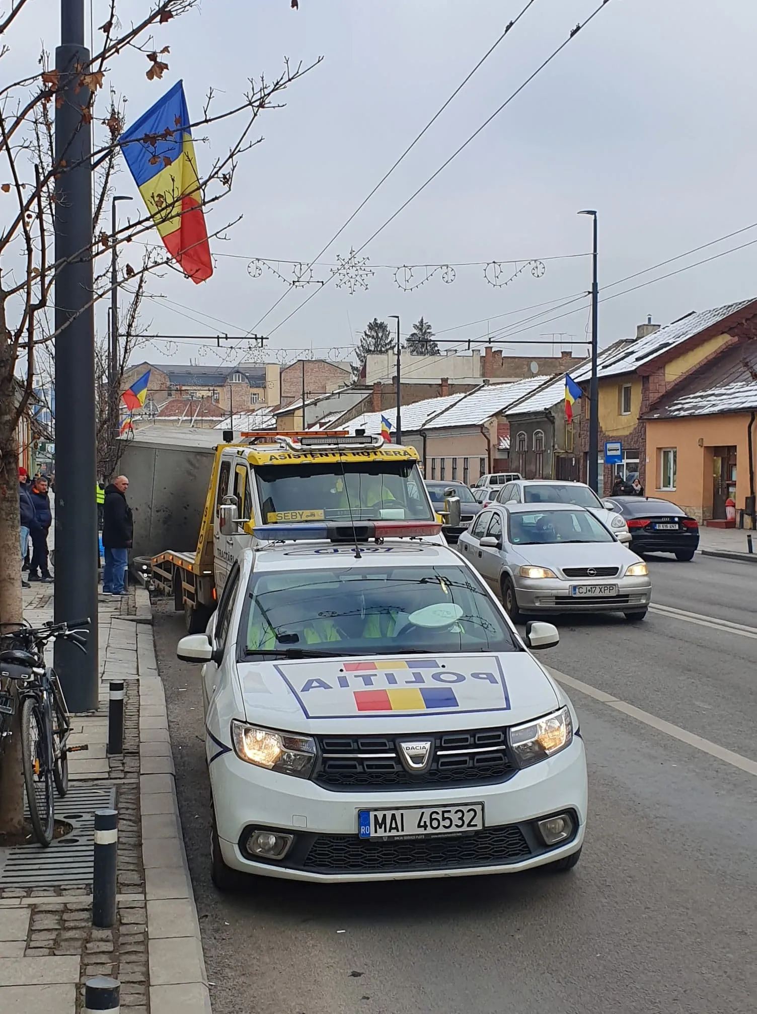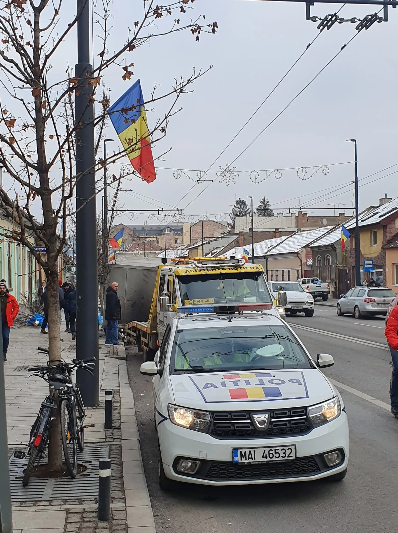 O mașină de poliție trecea prin zonă și a oprit pentru a constata ce s-a întâmplat.