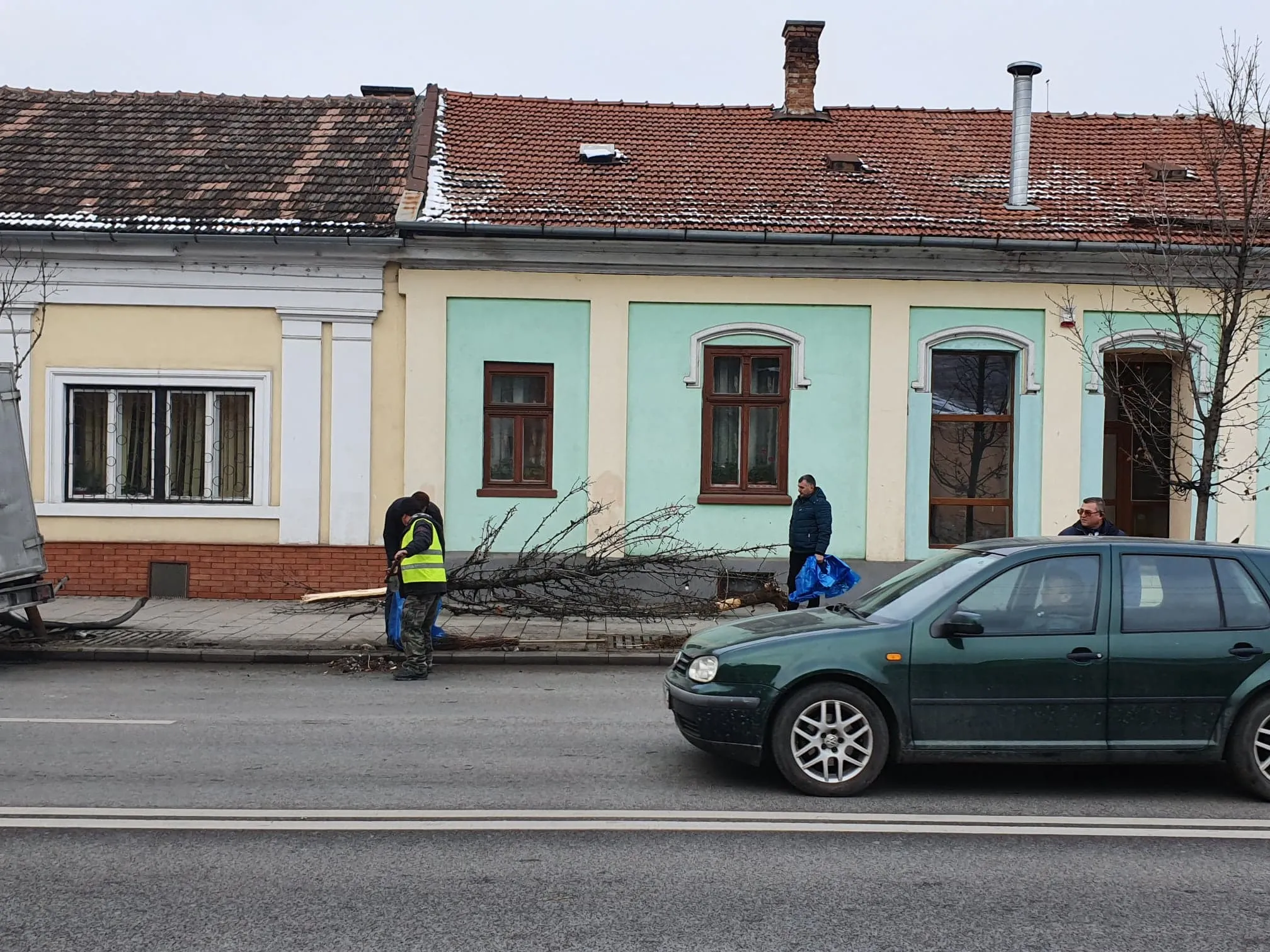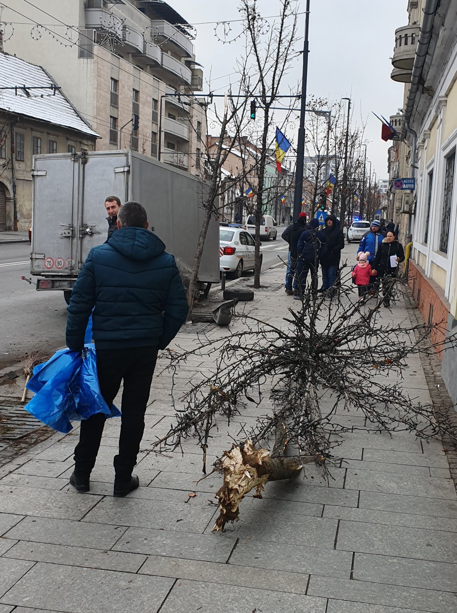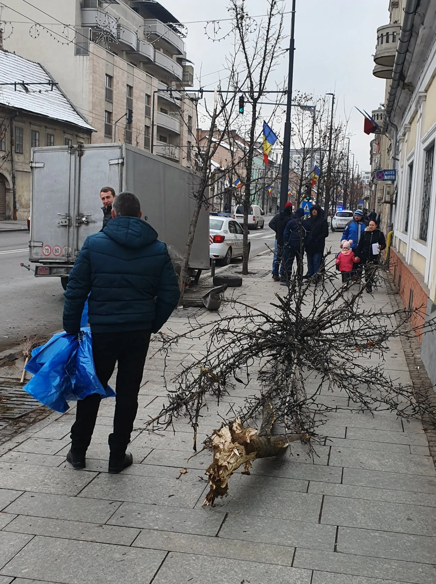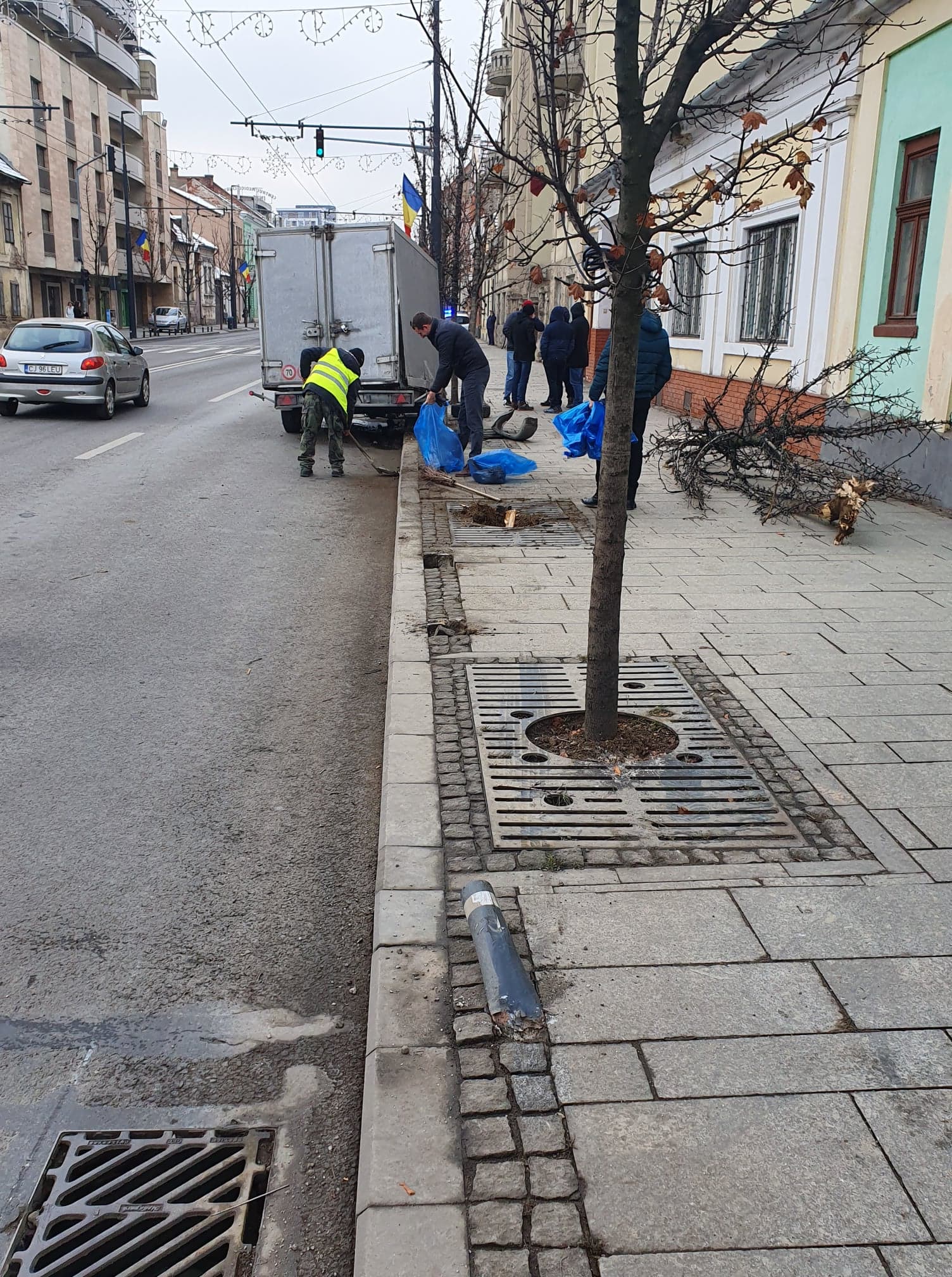 O remorcă de la un autocar s-a desprins pe strada Moților și a rupt un copac de pe marginea drumului.