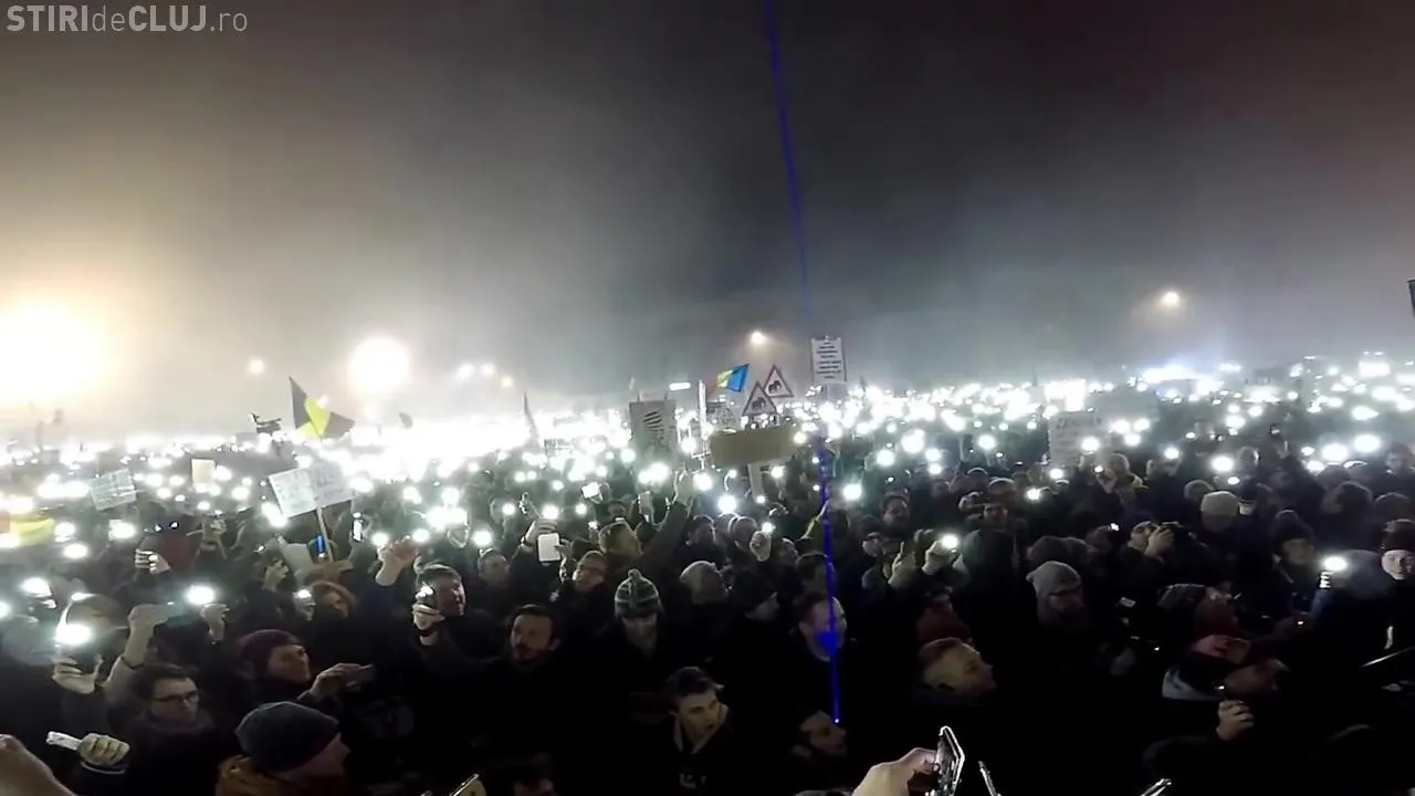 Peste 50.000 de clujeni au cântat ”Deșteaptă-te române!” în Piața Unirii, duminică seara.