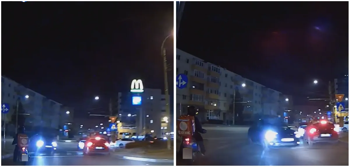 În filmare se vede cum mașina din care se filmează și un scuterist intră pe strada Parâng, după ce au așteptat la semafor, cum este corect. Însă, dintr-odată scuterul se trage la stânga: din față, un șofer inconștient intră pe contrasens, ca și cum ar fi un lucru normal pentru el.