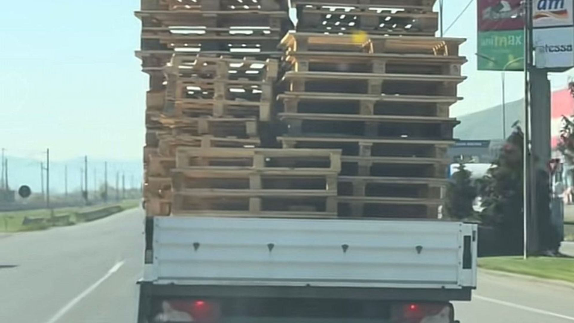 Un șofer inconștient din Cluj a fost filmat în timp ce transporta o încărcătură extrem de instabilă într-o dubiță: zeci de paleți de lemn suprapuși, fără să pară asigurați corespunzător. În imagini, realizate de un alt șofer, se observă cum încărcătura se mișcă vizibil la fiecare frânare și denivelare, existând riscul ca aceasta să cadă pe carosabil.
