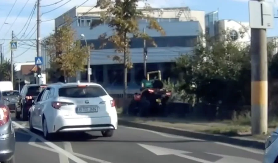 Un incident neașteptat a fost surprins zilele trecute în traficul din Cluj-Napoca pe strada Traian Vuia, în apropierea magazinului Ambient. În timp ce mașinile așteptau bară la bară, un tânăr aflat pe un ATV a decis să își croiască drum pe trotuar, ca să evite aglomerația.